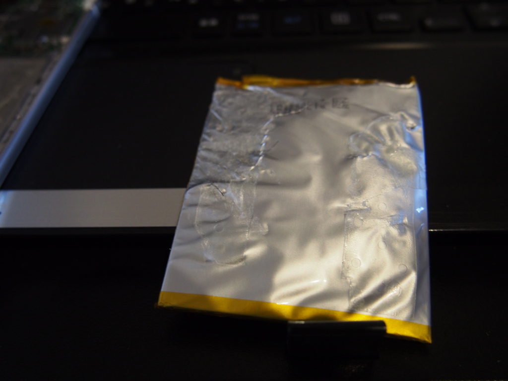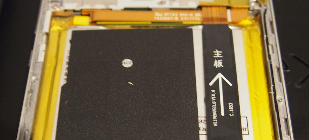 バッテリーも同じように基盤にケーブルで刺さっているので、まずそれを外して、後は張り付けてあるだけなのではがすだけです。